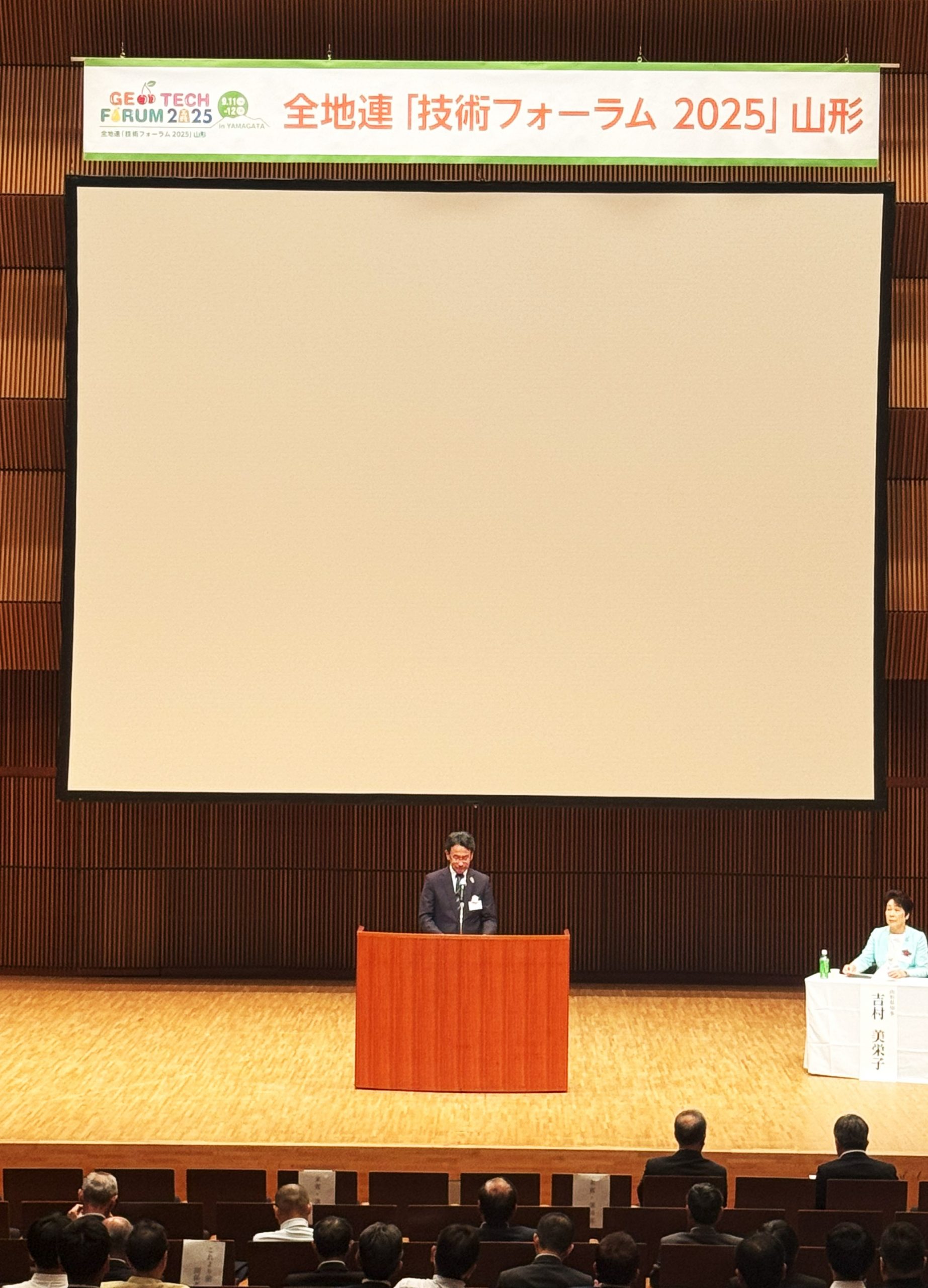 2025.09.16 技術フォーラム2025 in 山形 令和7年9月11日(木)~9月12日(金)の2日間に渡り、全地連主催の技術フォーラムが開催されました。 今年のテーマは「防災・減災、国土強靭化を担う地質調査業」~阪神・淡路大震災から30年~と題し、山形県山形市で開催され、全国から多くの参加者が集い講演会・技術発表会が催されました。 また、展示会場の一角には展示ブースも設けられ、多数の地質調査業関連会社・ボーリング機材製造会社も集まり、最新鋭の機械・設備の紹介もありました。